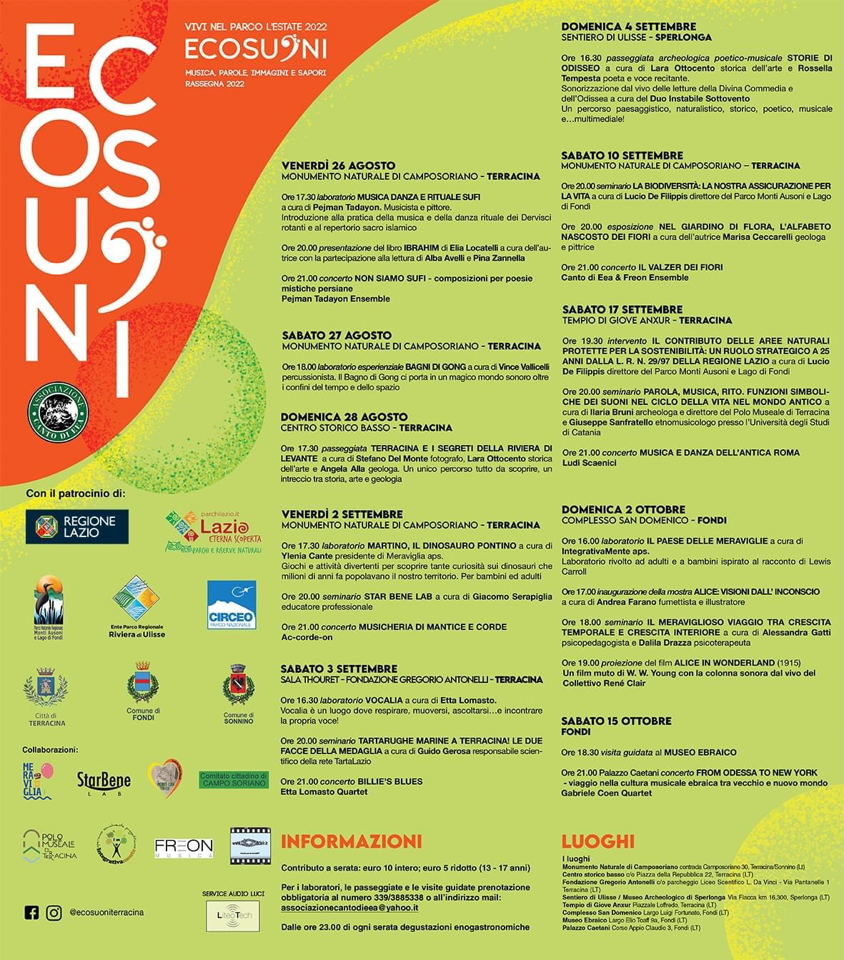 Anche quest’anno Ecosuoni ci propone una serie di eventi imperdibili di grande spessore culturale a Terracina e dintorni.